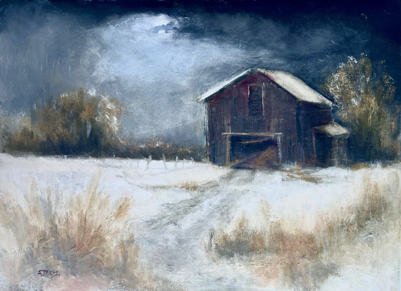 Moonlight Barn by Karen Storm, 9x12, $450