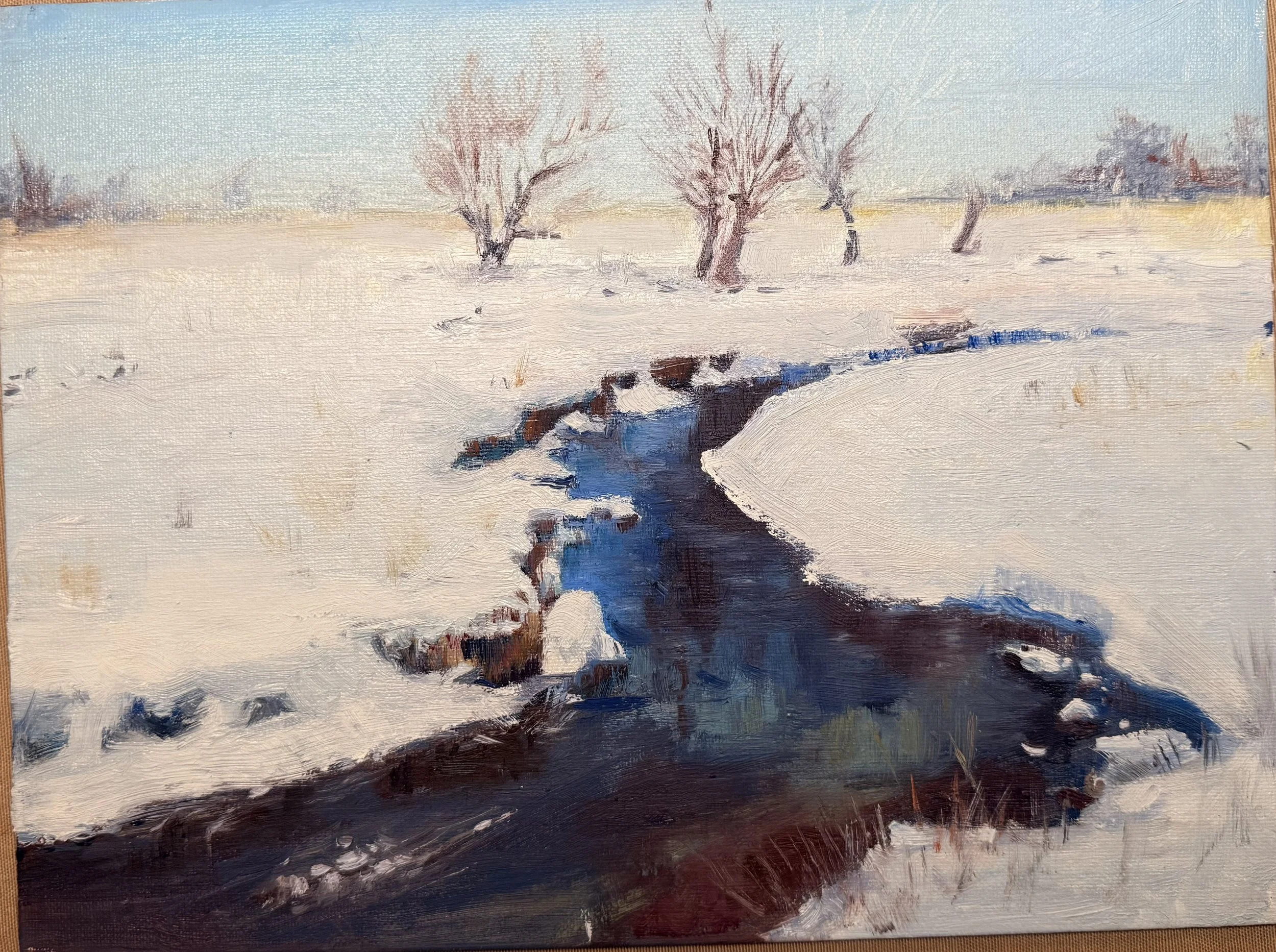 SOLD Winter Creek Bend by Bezhan Urfonov, Oil, 9x12, $700